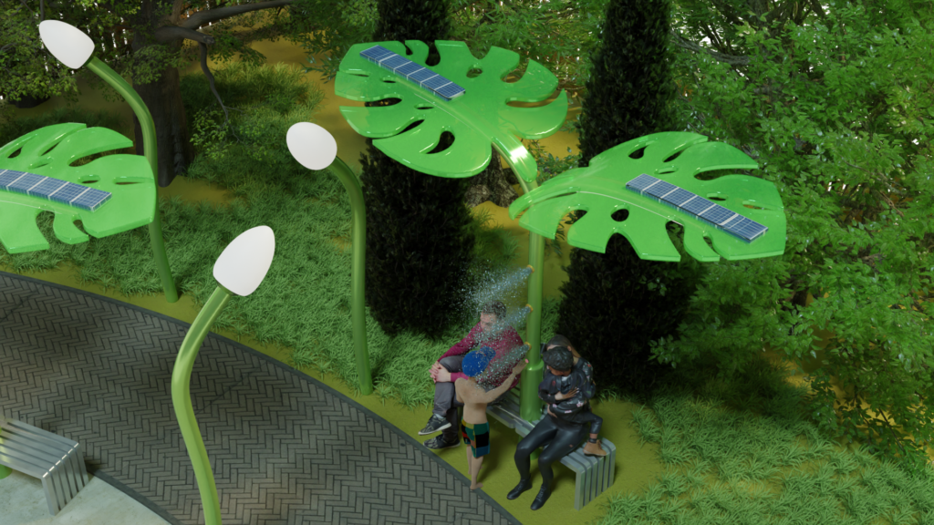 Mist Breeze expands the reach of your urban area and offer immediate breeze from the heat. Designed as an engaging and eco-conscious feature, Mist Breeze revitalizes the